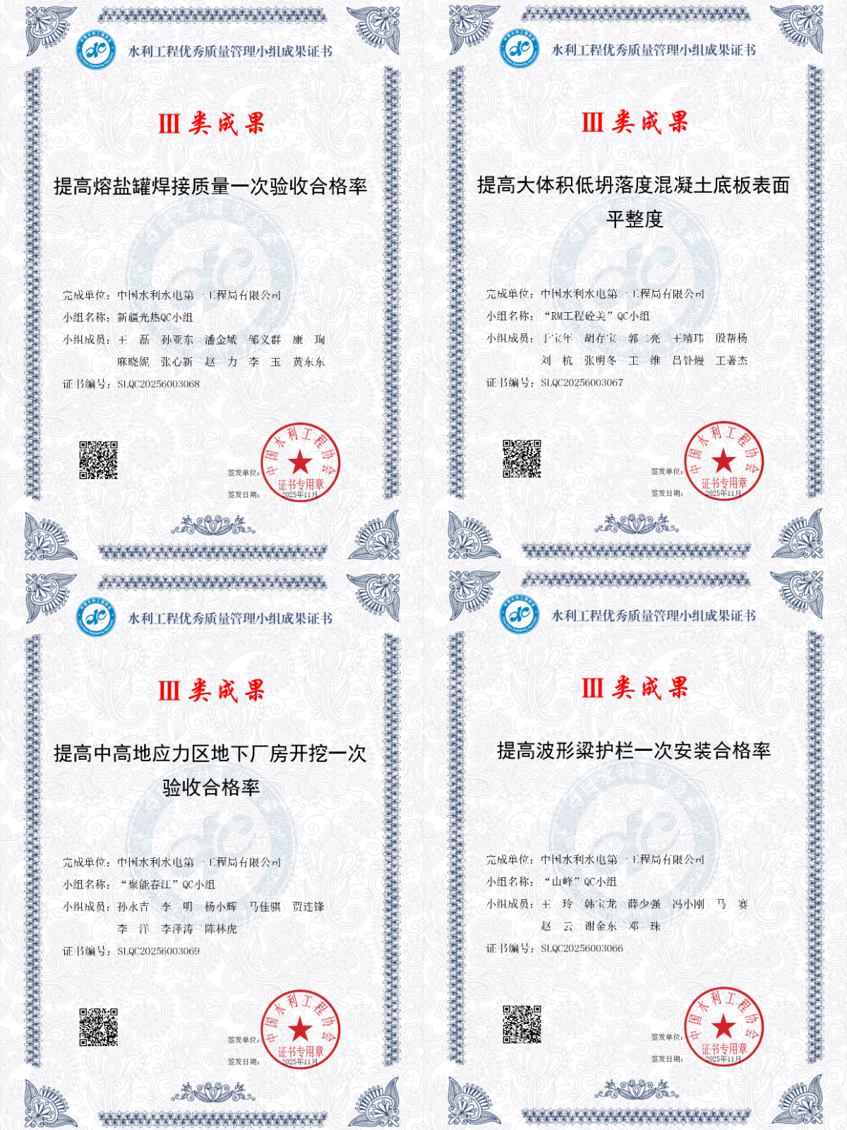 近日,2025年度全國水利工程優秀質量管理小組成果名單正式公布,公司申報的7項成果成功入選,展現了公司在一線質量管理和工藝創新方面的堅實實力。 本次申報獲獎的成果,聚焦水利工程建設中的難點與痛點,通過一線技術人員的集體攻關,有效解決了多項施工質量難題。其中,《提高高海拔隧道混凝土路面平整度合格率》《提高水利隧洞灌漿施工一次驗收合格率》《研制狹窄場地條件下大跨度鋼桁架橋梁架設技術》等直面高海拔特殊環境、隧洞防滲核心工藝、復雜場地橋梁施工等行業挑戰,通過優化工藝、創新工法,顯著提升了工程質量和施工效率。 《提高波形粱護欄一次安裝合格率》《提高大體積低坍落度混凝土底板表面平整度》《提高熔鹽罐焊接質量一次驗收合格率》《提高中高地應力區地下廠房開挖一次驗收合格率》等成果覆蓋了安全防護、混凝土施工、特種焊接及地下工程等多個領域,體現了公司在精細化管理和過程質量控制上的持續努力。 此次多項成果獲獎,是水電一局長期堅持“質量為本、創新驅動”發展理念的生動體現。公司積極鼓勵一線員工開展QC小組活動,運用PDCA等科學方法解決實際問題,將質量管理融入日常施工的每一個環節,有效推動了工程品質的穩步提升。 水電一局將繼續深耕一線,激發全員創新活力,以更多高質量的創新成果推進新質生產力發展,為服務國家水網建設和水利事業高質量發展貢獻更大力量。 |