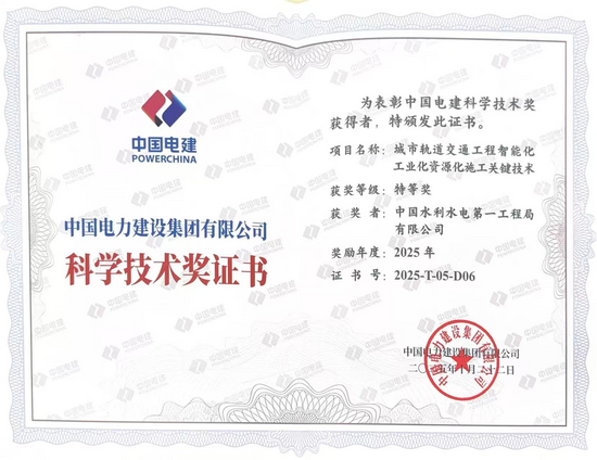 近日,中國電建集團2025年度科學技術獎評選揭曉,公司科技創新再創佳績。 公司參與研究的《城市軌道交通工程智能化工業化資源化施工關鍵技術》榮膺特等獎、主持研究的《陡峭山地復雜地貌數字光伏電站建造運維關鍵技術與應用》及《裝配式工業廠房設計、建造精裝修一體化關鍵技術研究》兩項成果榮獲三等獎。此次多項成果獲獎,是集團公司對公司科技研發能力的高度認可,也彰顯了公司科技創新水平的持續提升。 榮膺特等獎的《城市軌道交通工程智能化工業化資源化施工關鍵技術》,聚焦城市軌道交通建設的智能化、工業化與資源化發展方向,成功研發了成套施工技術與裝備體系,實現了施工過程的精準控制、綠色建造與資源高效利用,為我國城市軌道交通建設轉型升級提供了重要技術支撐。該技術依托深圳地鐵五期、深惠城際鐵路等重大工程,圍繞盾構智能掘進、裝配式車站建造與渣土規?;Y源利用等難題,通過涵蓋理論創新、裝備研制、材料開發與技術研發的系統性攻關,最終實現了關鍵技術突破。 此次獲獎是公司堅持科技創新驅動、深耕專業領域的重要體現。長期以來,公司始終推動科研創新與生產實踐深度融合,持續完善科研創新體系,組建高素質攻堅團隊,精準對接行業趨勢與市場需求,以科技創新賦能產業升級,為企業高質量發展注入強勁動能。公司將繼續錨定科技自立自強目標,聚力核心技術攻關,加速成果轉化,為企業高質量發展貢獻更多科技綠色動能。 |