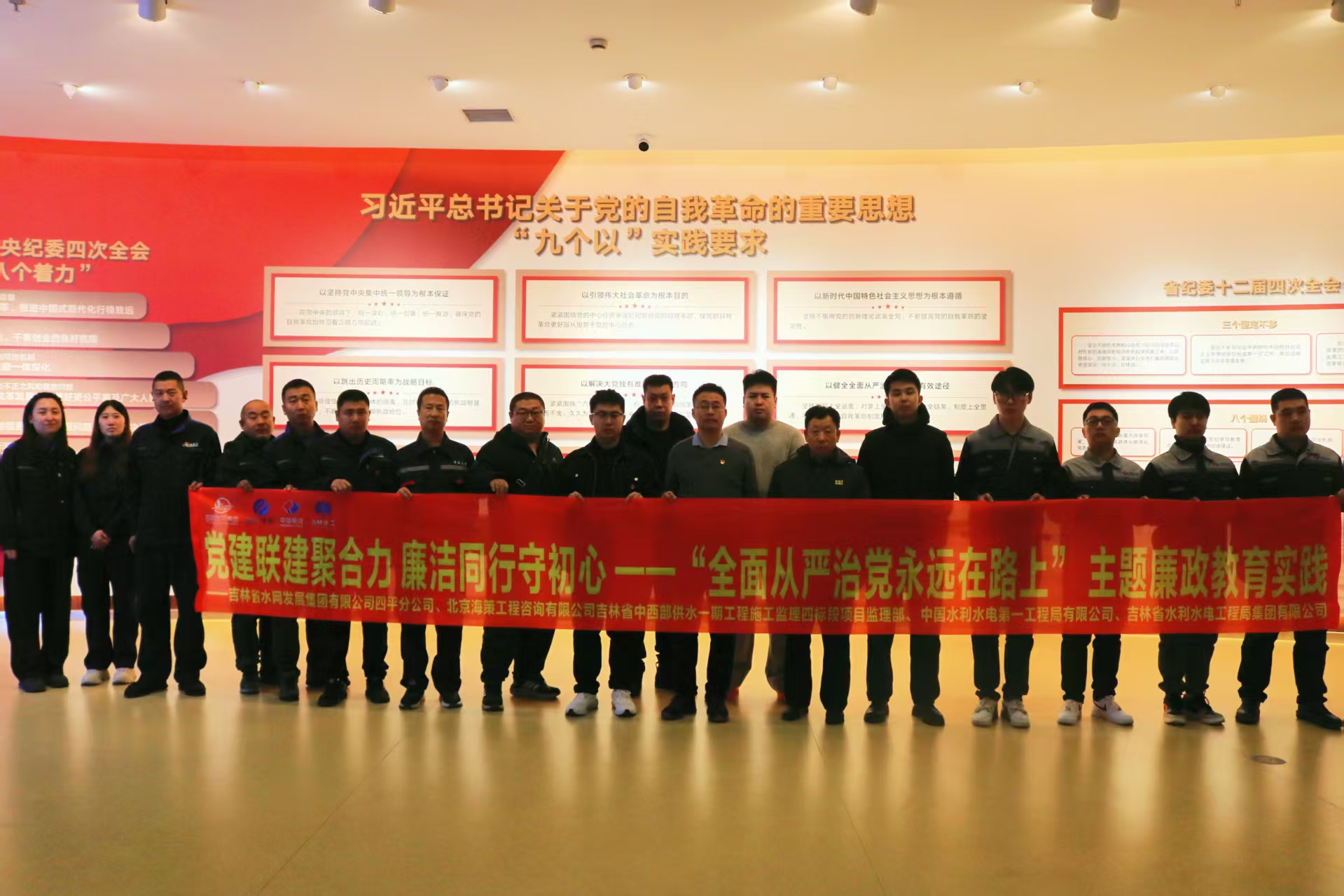 為深入推進學習教育常態化長效化,筑牢水利工程建設領域拒腐防變思想防線,12月9日,大水網項目部黨支部聯合項目其他三家參建單位,以主題黨日的形式開展了“黨建聯建聚合力 廉潔同行守初心”主題廉政教育實踐活動。 活動組織各單位黨員領導干部前往吉林省廉政教育中心,在廉政教育中心講解員的引導下,全體參學人員依次參觀了各個主題展廳。通過圖文展板、實物陳列、視頻短片、案例剖析等豐富多樣的展陳形式,系統學習了黨和國家領導人關于全面從嚴治黨、黨風廉政建設的重要論述,深入了解了黨的十八大以來反腐倡廉工作取得的歷史性成就。一個個發生在省內的違紀違法典型案例、一段段發人深省的懺悔實錄,從理想信念滑坡到貪欲滋生蔓延,從人情往來失守到權力濫用失控,全方位、多角度展現了腐敗行為給黨和國家事業、人民群眾利益、個人家庭幸福帶來的嚴重危害,讓參學人員接受了一次直擊心靈的思想淬煉和精神洗禮。大家駐足凝視、認真聆聽,深刻體會到“不敢腐、不能腐、不想腐”的重要性與緊迫性,進一步增強了知敬畏、存戒懼、守底線的政治自覺和行動自覺。 “水利工程關乎民生福祉,廉潔建設是工程質量的生命線。”在交流研討環節,四家單位的黨員代表結合項目建設實際,圍繞“如何以廉政建設護航工程建設”“怎樣打造廉潔模范樣板工地”等主題展開深入交流。大家一致認為,作為水利工程建設的參與者,必須將廉潔自律內化于心、外化于行,把廉政建設要求貫穿工程規劃、施工、監理全過程。 自項目開工以來,項目黨支部始終堅持黨建引領,將黨風廉政建設與工程建設深度融合,積極推進廉潔模范樣板工地創建。通過健全組織機構、完善管理制度、強化監督考核,嚴格落實中央八項規定精神,規范工程招投標、物資采購、資金使用等關鍵環節管理,形成了“黨員帶頭、全員參與”的廉潔建設工作格局。工地現場通過設置廉潔文化宣傳欄、懸掛警示標語、開展廉潔承諾簽名等活動,營造了濃厚的廉潔建設氛圍,確保工程建設既保質量、保進度,又守底線、守初心,切實以廉潔樣板工地建設助力“工程安全、資金安全、干部安全、生產安全”目標實現。 此次活動搭建起了優質的學習交流平臺,大水網項目黨支部將以此次活動為契機,持續深化黨建聯建機制,常態化開展廉政教育、廉潔督查等活動,推動廉潔文化在工程建設一線落地生根,引導全體參建人員始終堅守廉潔初心、勇擔建設使命,以過硬作風和務實舉措把工程建成經得起歷史、實踐和人民檢驗的優質工程、廉潔工程,為吉林水利事業高質量發展貢獻一局力量。 |